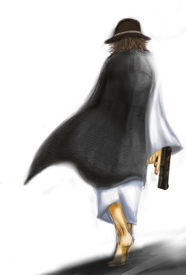 オリジの夏絵の話をしていたら、まっちさんが、『ゼロス、ブーメラン穿いてるし、甲にもブーメラン』(???)と言って譲らなかったのでどんなもんになるのか、まずはピンで描いてみました。